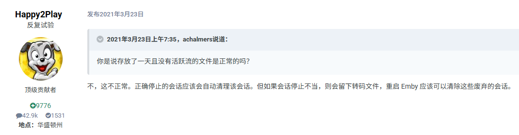 上网搜了一下,根据emby官方论坛里的说法,的确应该是我所想的那样文件转码结束后就应该自动删除临时文件,如果没有删除的话可能是转码过程中出现了错误或意外中断,解决方法是重启服务器即可。