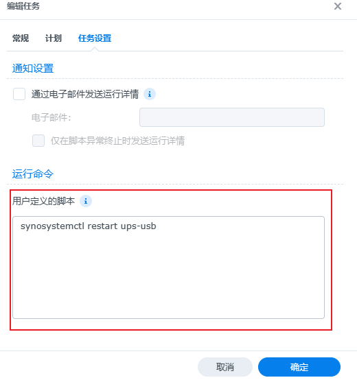 synosystemctl restart ups-usb再设置一个计划任务重启ups服务