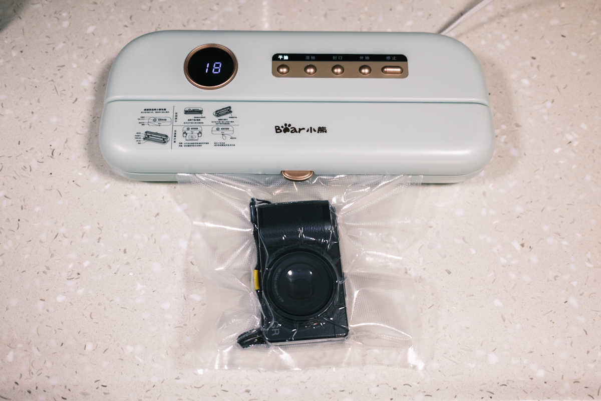 速度还行,上面实验的相机,从抽真空到封口大约几十秒,家用足够,不过根据说明连续工作十次机器需要冷却后才能继续使用;