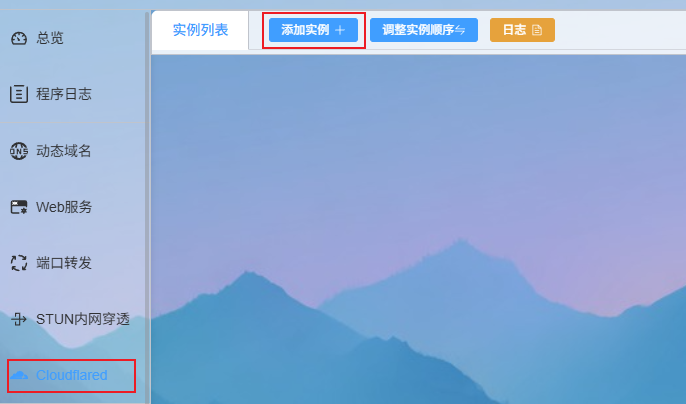 打开NAS上安装的Lucky,左侧菜单找到cloudflared,点击添加实例